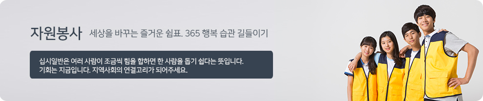 - 지역 내 자원봉사활동 희망 분야(아동, 청소년, 여성, 노인, 정신보건, 장애인, 지역복지 영역) 기관단체로 연계